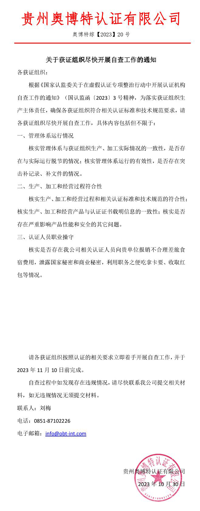 關(guān)于獲證組織盡快開展自查工作的通知